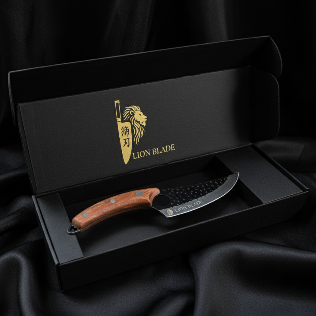 Presented in an elegant black Lion Blade gift box, the Shi-Jin Redwood Hunter is ideal